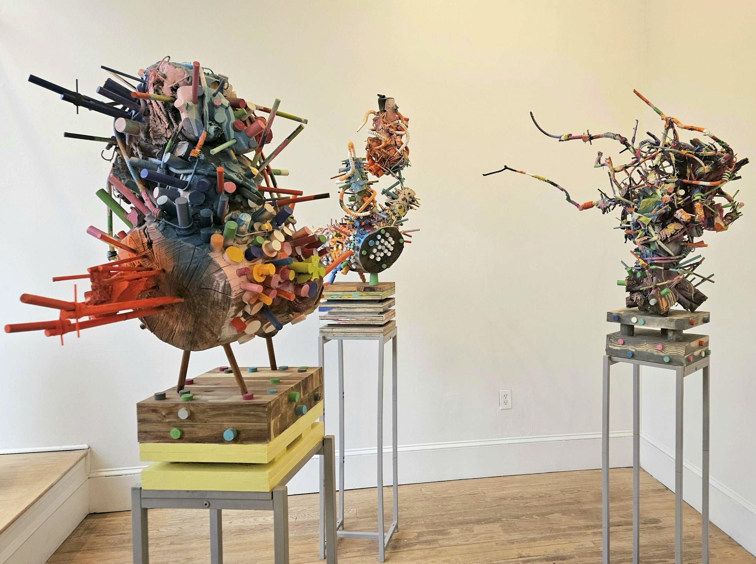 Featuring handmade earth-pigment oil paintings with fibers and natural materials, Deanna Jacome creates atmospheric, layered landscapes rooted in the natural world. Anthony Surratt explores abstraction through paper, ephemera, and assemblage, building richly textured compositions. In contrast, Lee Williams constructs colorful, whimsical sculptures using wood, steel, concrete, rope, and an array of found materials.